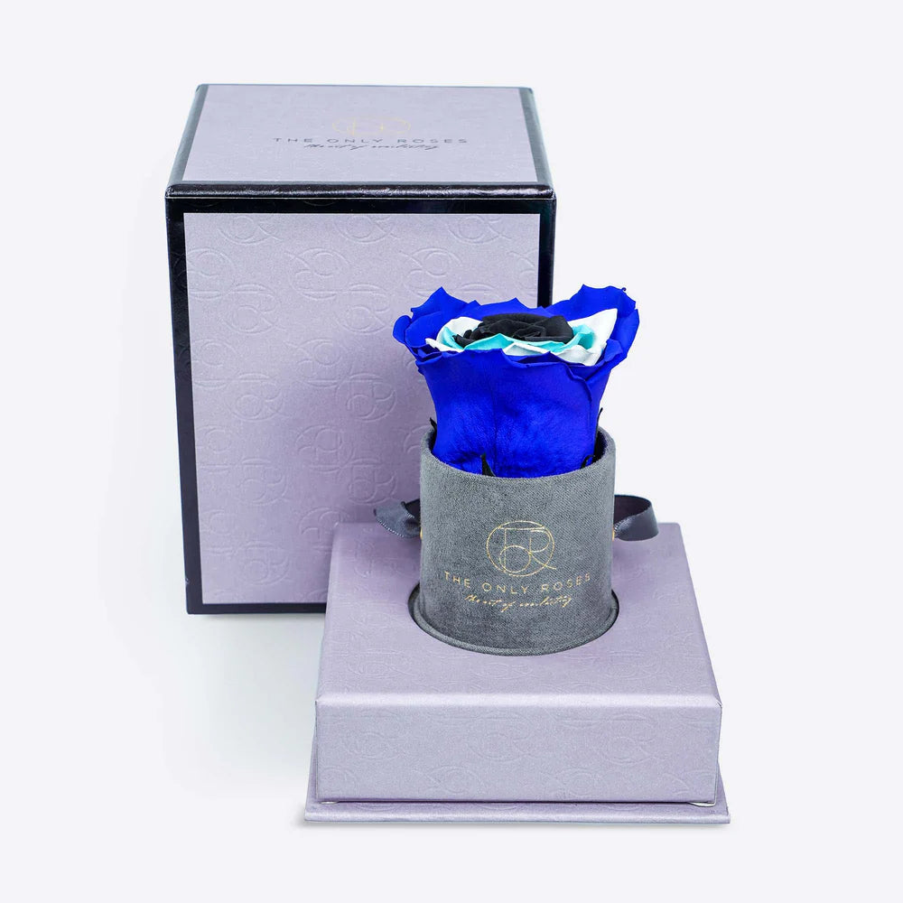 灰色絨面小圓帽盒中的邪惡之眼標誌