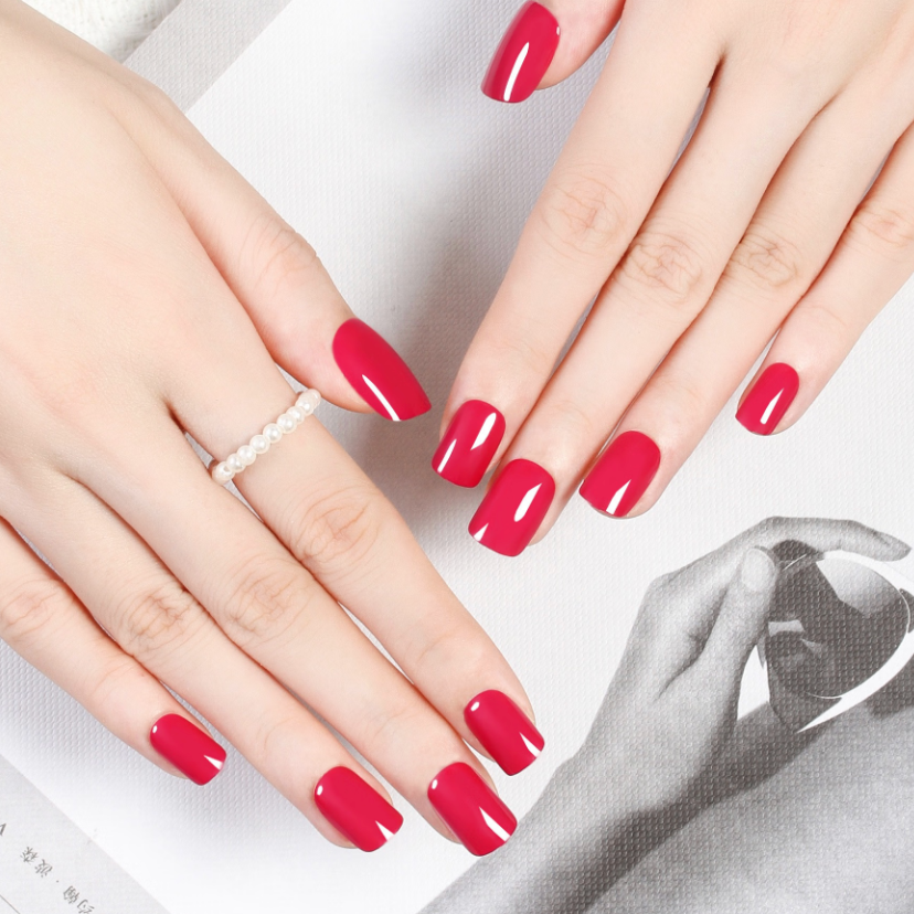 【網紅爆款】Joyme|短款方頭純色穿戴式美甲貼片24片 粉/白/淺紅/深紅