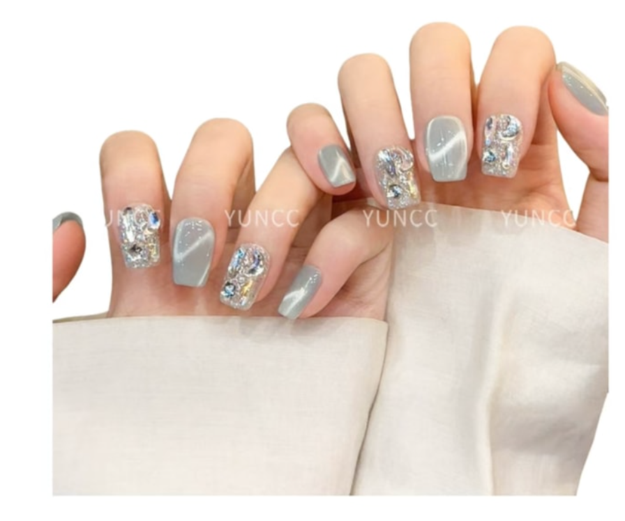 雲皙 純手工美甲高級感成品貓眼短指甲貼片浮光悅影S10片*1盒