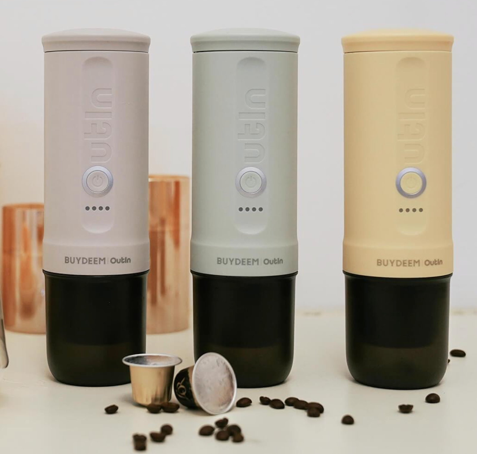 BUYDEEM北鼎 OUTIN聯名咖啡機 快速加熱 輕盈便攜式濃縮咖啡機 OTEM-01 淺衫綠/小鵝黃/燕麥白