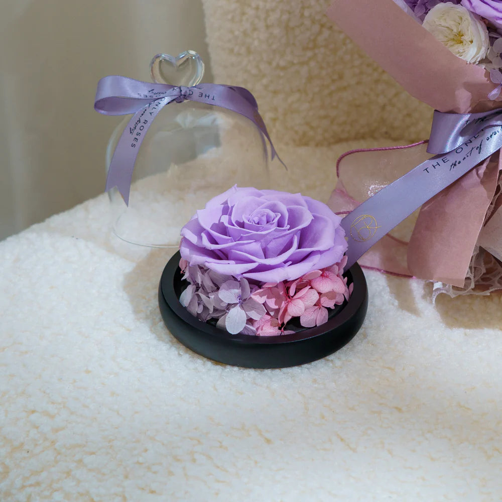 心形玻璃圓頂淡紫色玫瑰