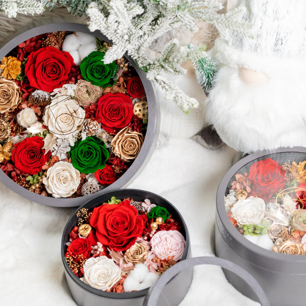 灰色經典小圓形陰影盒混合花卉節日版
