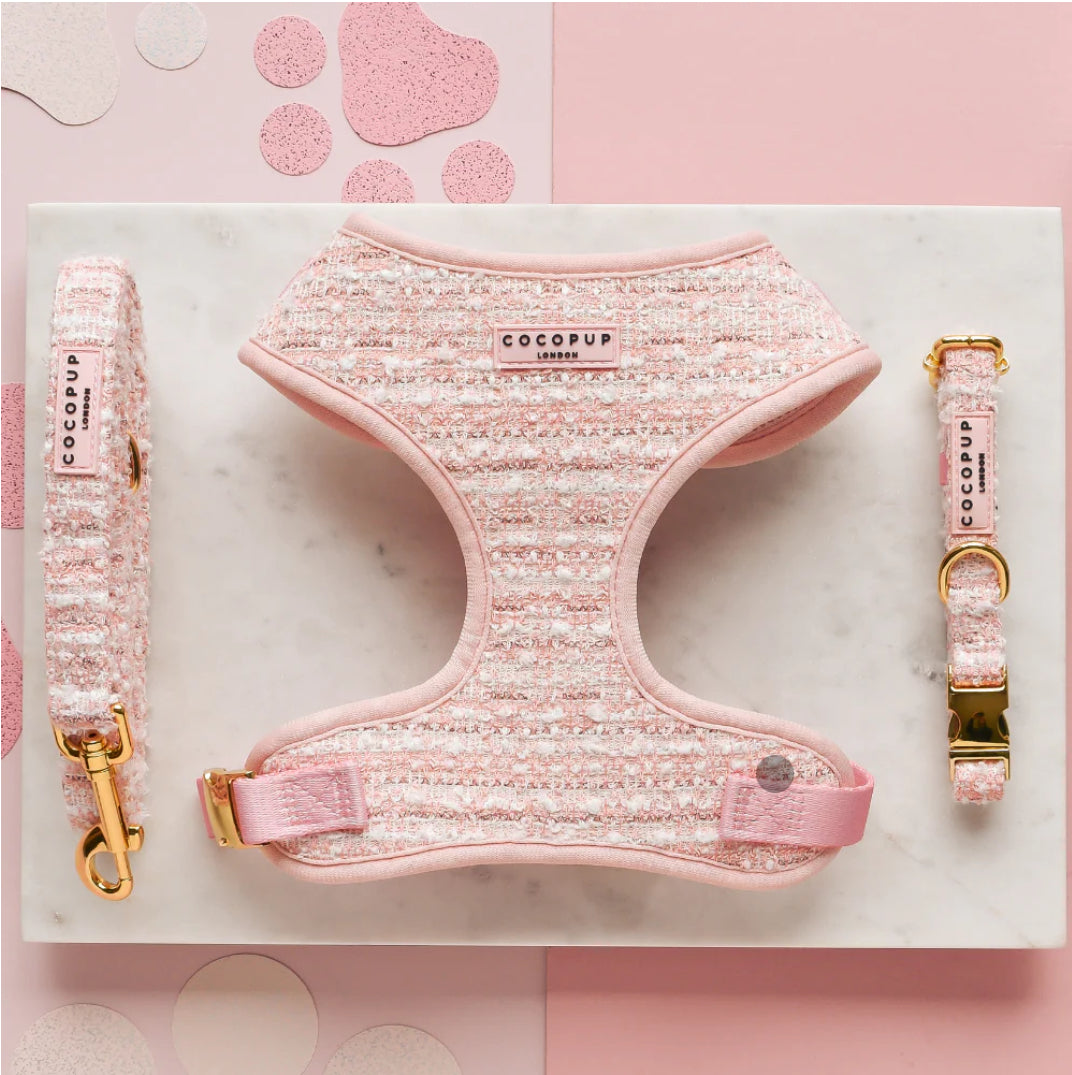 粉紅色紋理粗花呢可調頸帶、牽引繩和項圈套裝