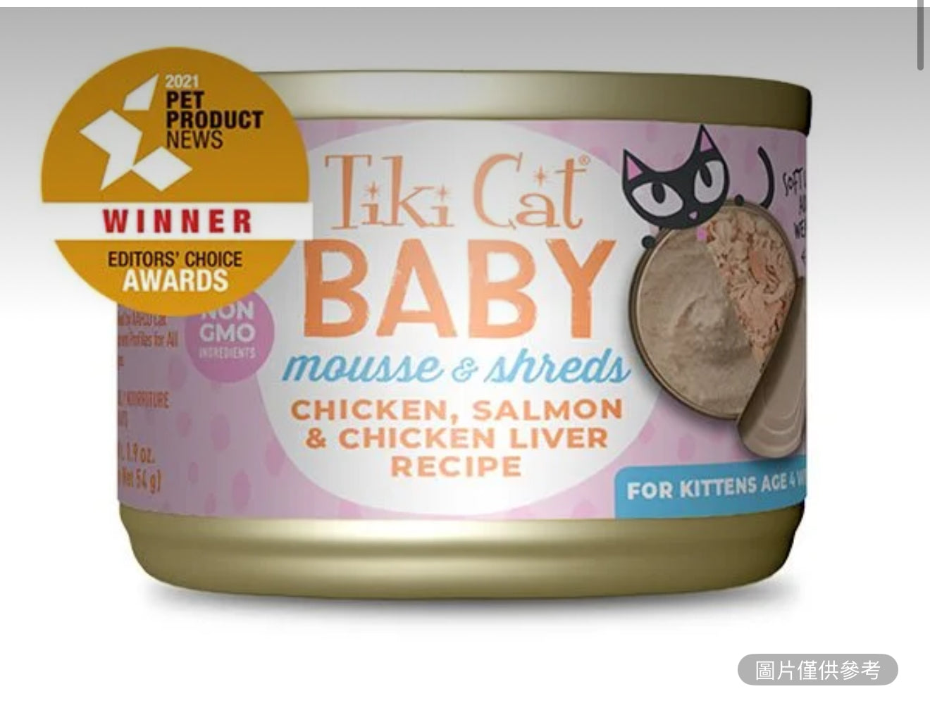Tiki Cat 寶貝幼貓慕斯、雞肉、三文魚與鴨肝配方貓糧 2.4盎司12罐裝
